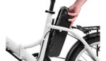 Écran LED étanche avec indicateur de niveau de batterie ; indicateur de niveau d’assistance au pédalage ; affichage/masquage des codes d’erreur ; connexion Bluetooth ; garde-boue en aluminium avec supports, noirs ; béquille arrière latérale réglable ; porte-bagages arrière (charge maximale : 25 kg) ; cadre pliable en aluminium